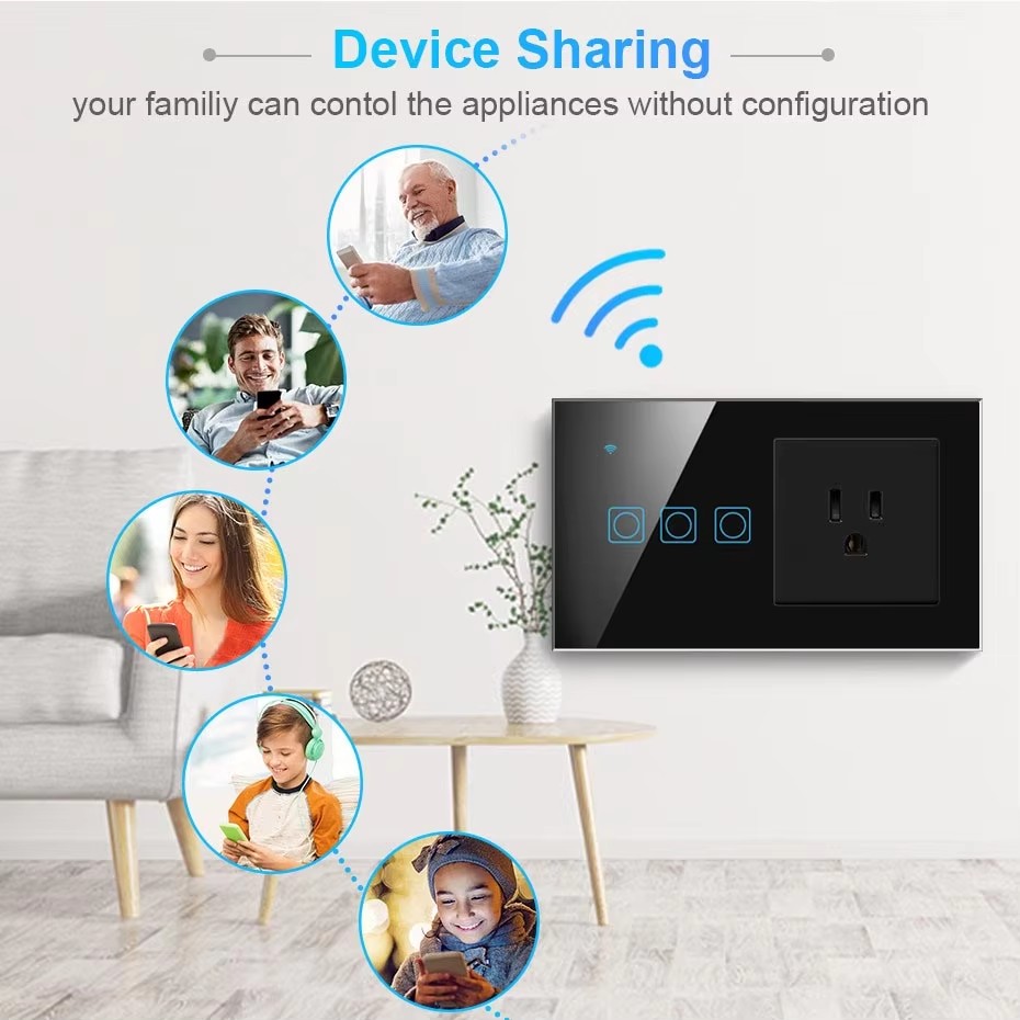 Modern Home Smart Wifi Control Tempered Glass Touch Wall Socket Panel for Wall Multi-function Gang Switch Panel