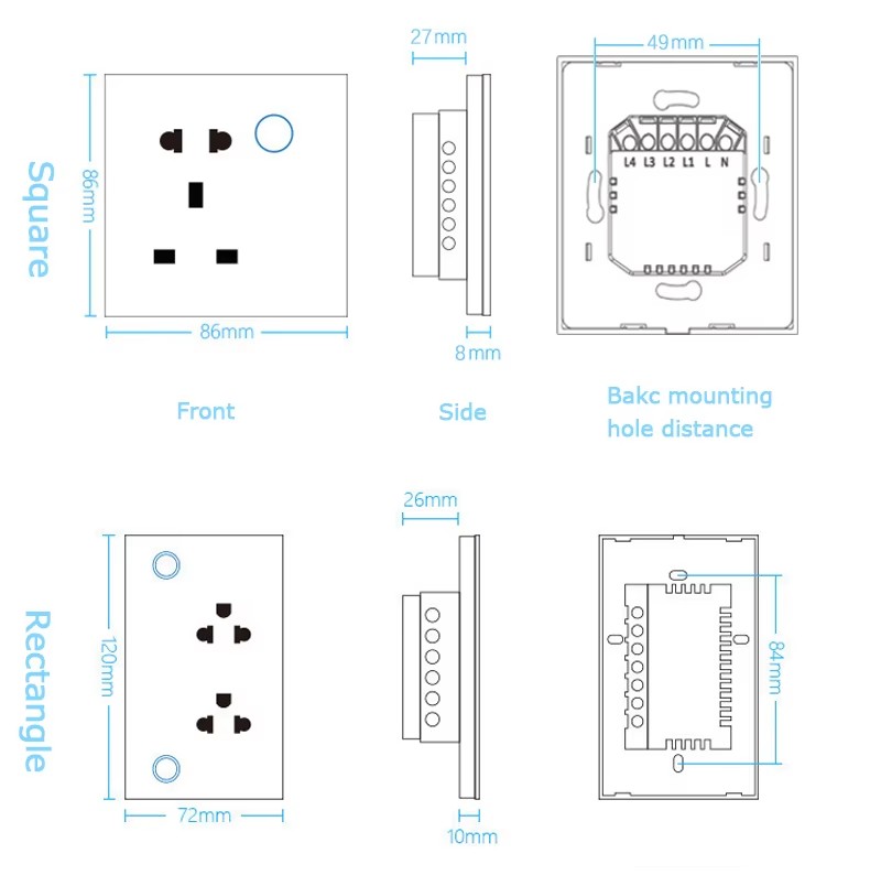 The touch-screen smart socket is waterproof and protected from water and electricity splashes. Note: Sockets with holes do not support waterproofing